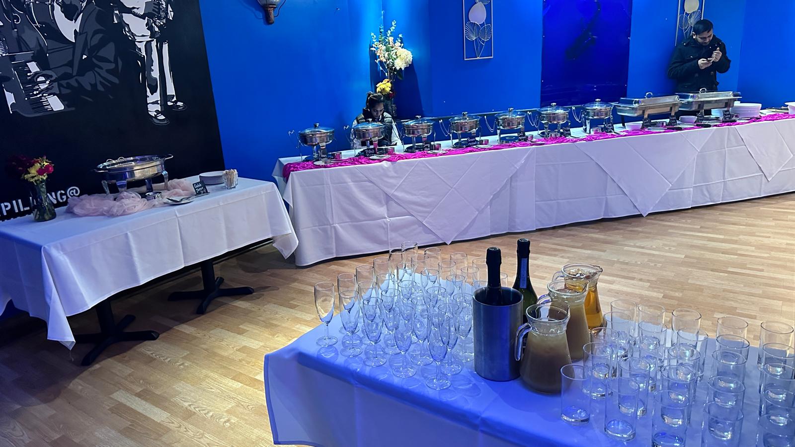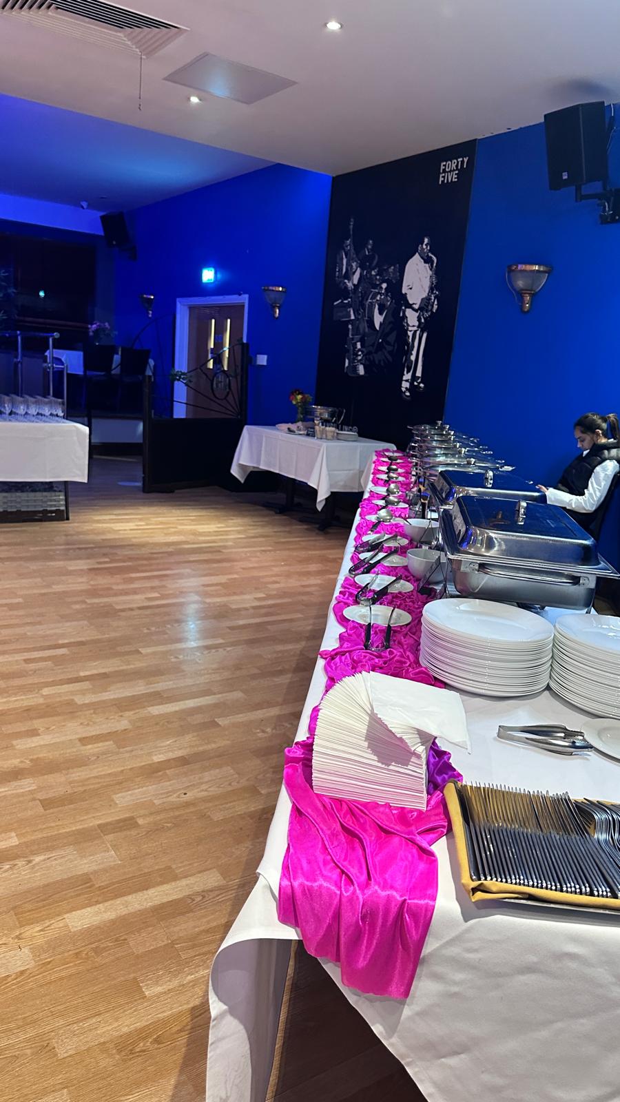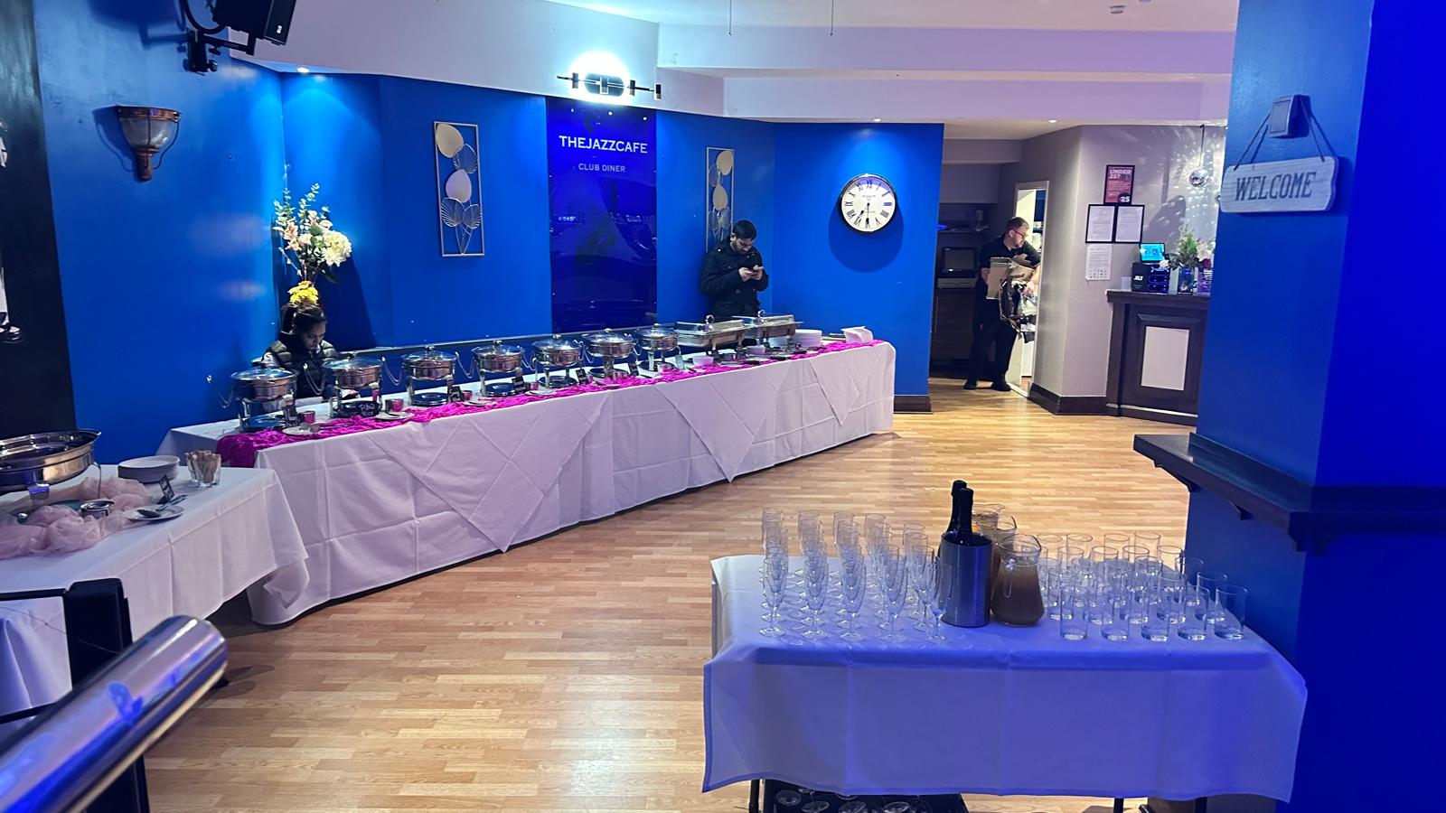 Toni’s 60th birthday party in July was an elegant affair. Once again, The Jazz Cafe was decorated in a very formal, glitzy colour scheme of black and gold for the black tie event complete with LED light up “60”. The host provided drinks on the tables, a mixture of juice and wine, and of course there was plenty of food to go around too. Like any good party, the dancing continued into the early hours and we had such a blast hosting this one.